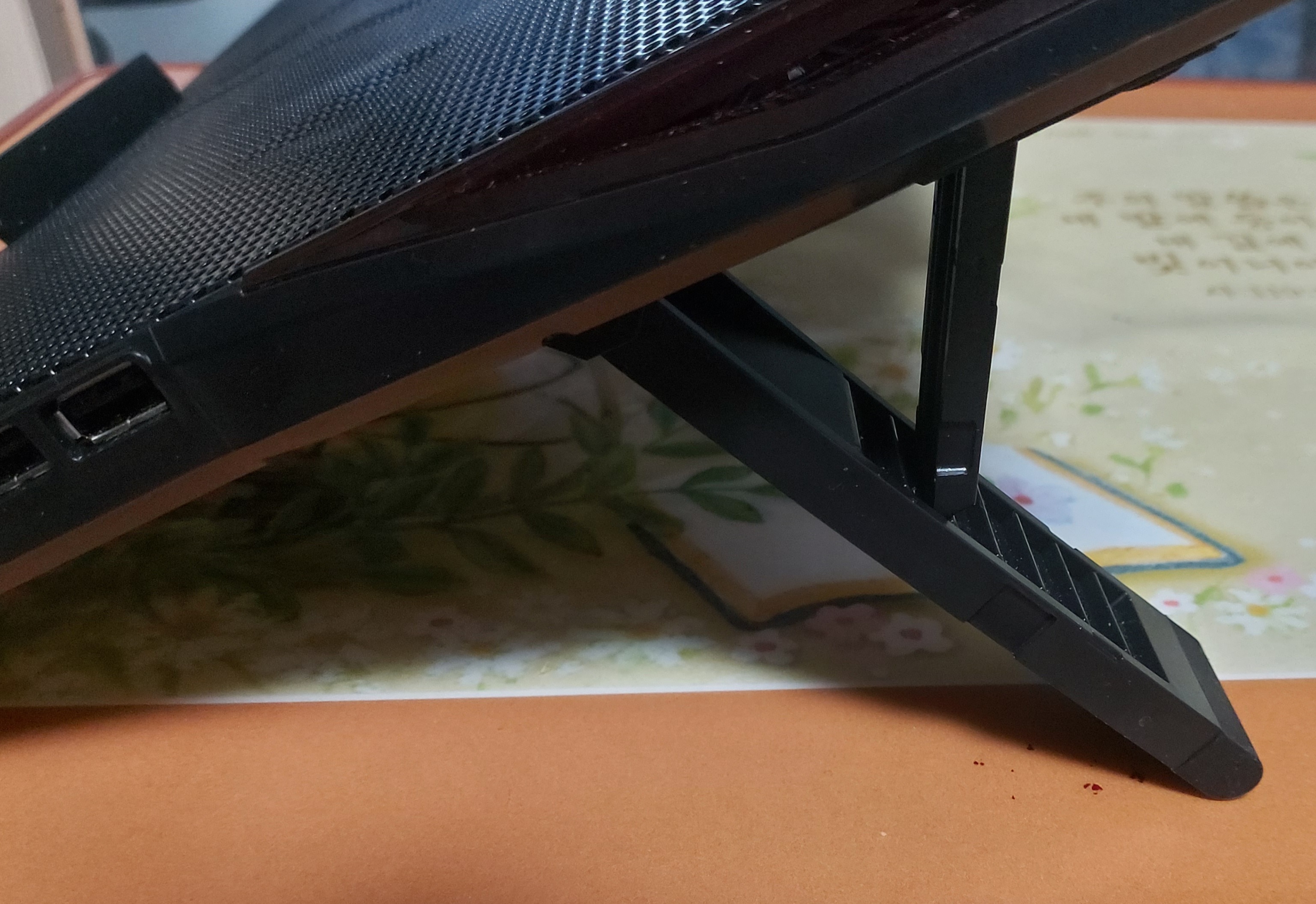 노트북 쿨러 거치대의 무게는 1kg을 전후로 제품마다 다양합니다. 이 제품같은 경우는 990g으로 휴대성 과 무게에서 단점으로 다가옵니다.